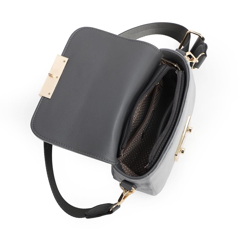 DET FØLGER MED EN REGULERBAR SKULDERREM I SAMME FARGE SOM VESKEN.