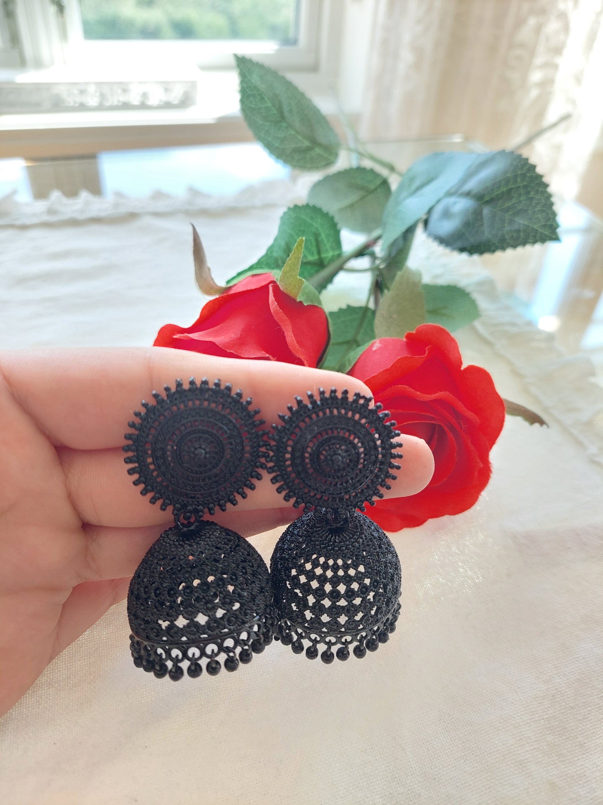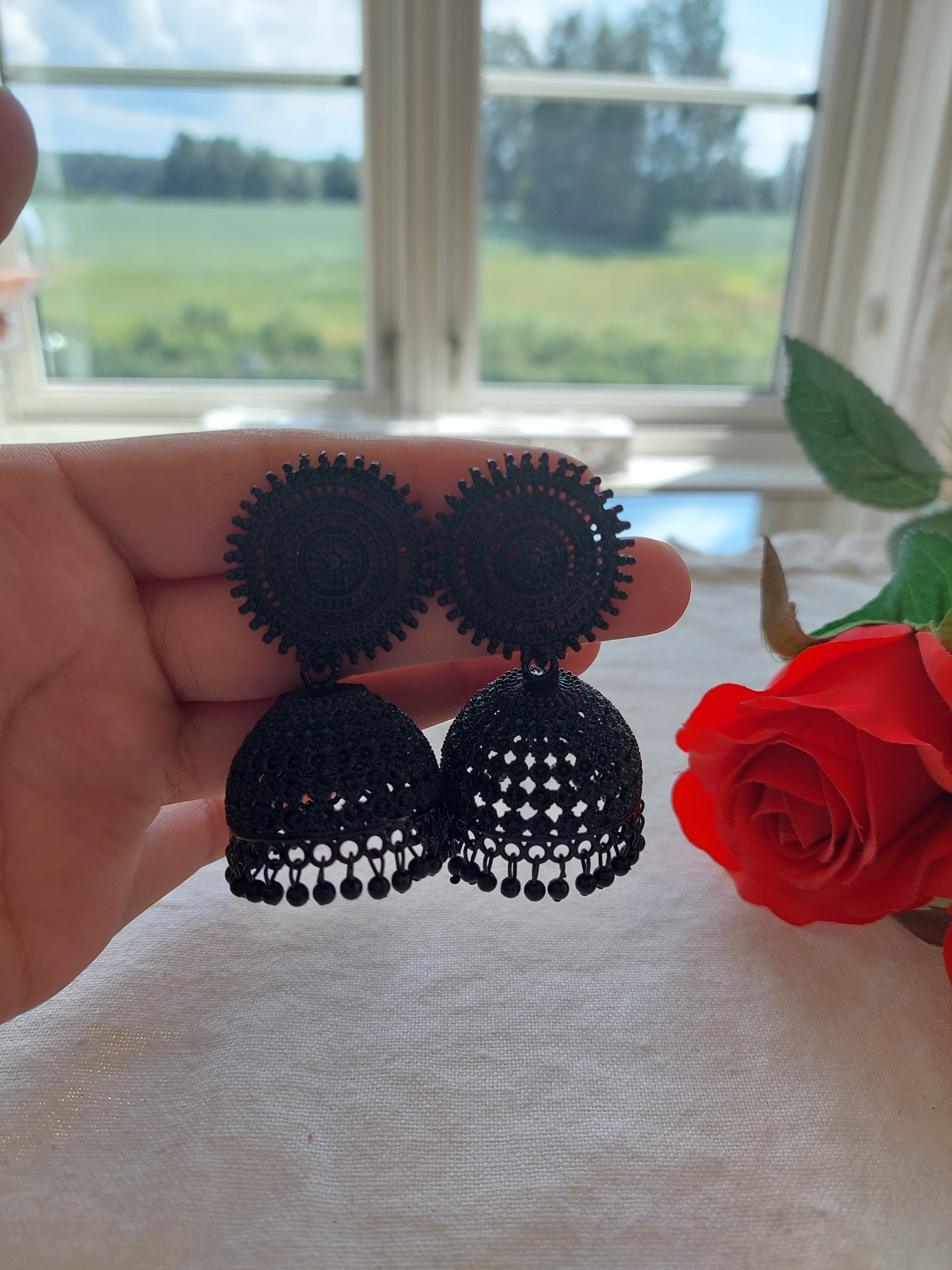 VAKKERT ØREPYNT I SVART FARGE